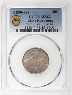 Kwangtung Province 20 cents (1890-08) PCGS MS62